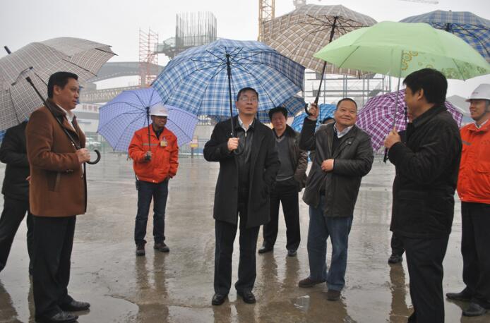 2015年1月6日,岳陽市副市長陳恢清、岳陽樓區(qū)區(qū)委書記秧勵一行在大岳高速洞庭湖大橋建設開發(fā)有限公司總經理梁振西的陪同下,冒著寒冬細雨來到大橋A1標項目視察。