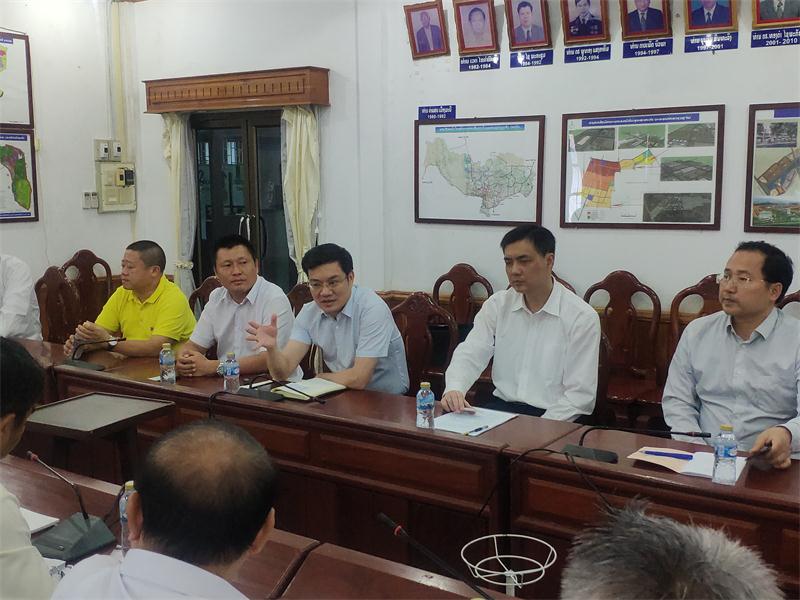 楊宏偉與中國駐老撾大使館經濟商務參贊王其輝(右二)交流
