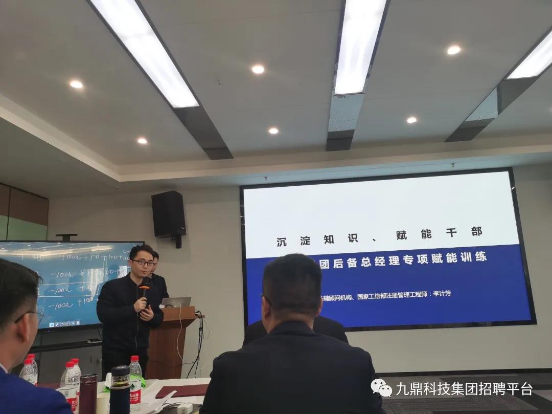 11月15日,九鼎集團(tuán)后備總經(jīng)理訓(xùn)練營培訓(xùn)如期舉行,九鼎集團(tuán)副總裁肖淑華及集團(tuán)總部各中心總經(jīng)理參與訓(xùn)練營授課工作,本次訓(xùn)練營為期4天,于11月18日完美收官。
