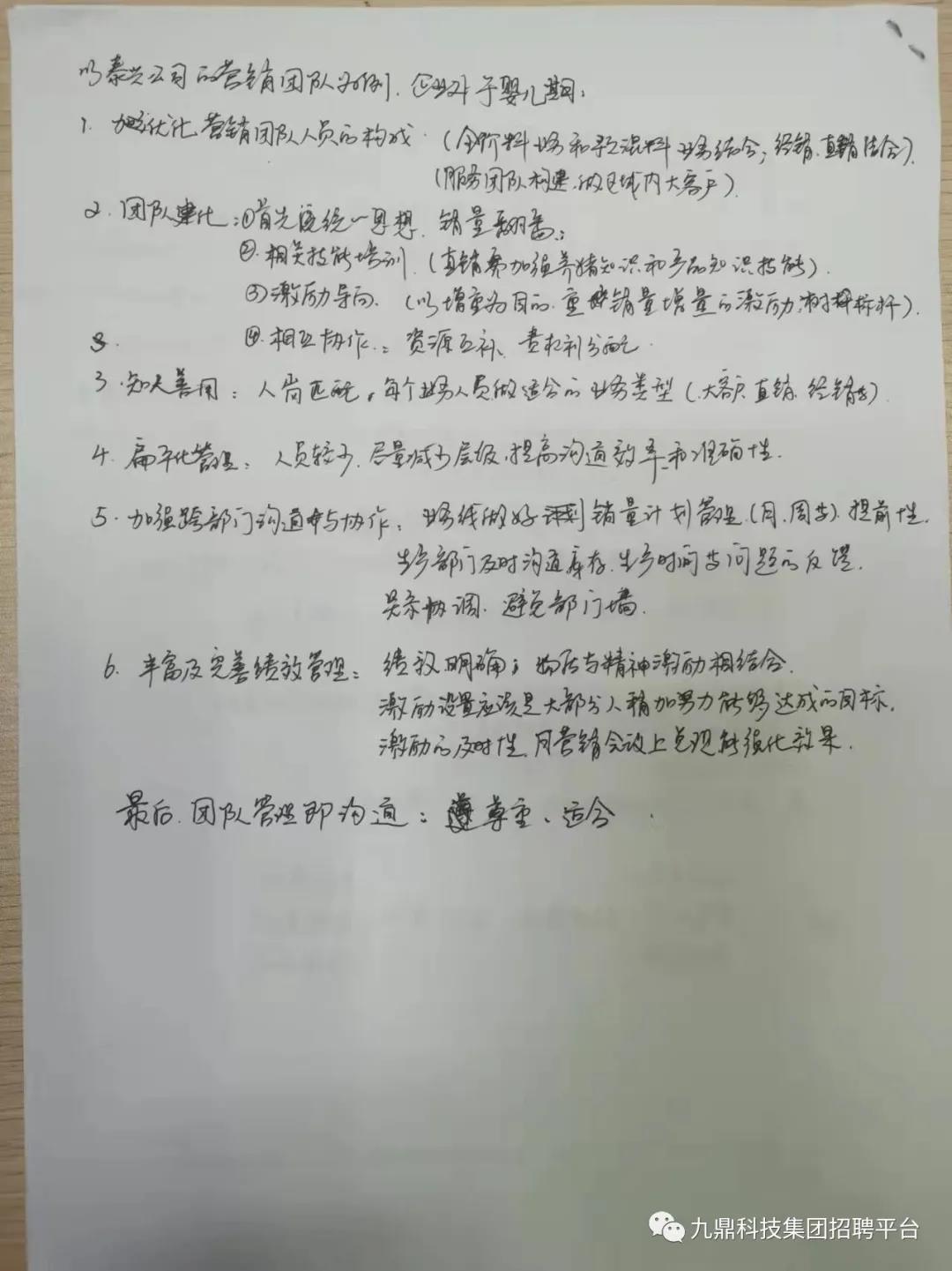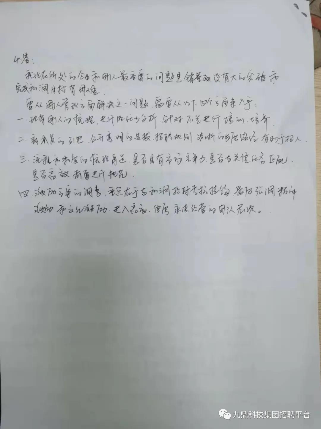 四天的培訓(xùn)時(shí)間是短暫的,留給大家更多的是思考如何立足本職工作,做好2022年的工作計(jì)劃,在今后的工作中比學(xué)趕超,做出成績。 另外,九鼎集團(tuán)中高管招聘工作還在繼續(xù)進(jìn)行中,如果您有興趣歡迎自薦或者推薦身邊的優(yōu)秀人員給我們。聯(lián)系方式可以投遞簡歷至文末招聘郵箱,或直接在本公眾號(hào)回復(fù)消息即可~~