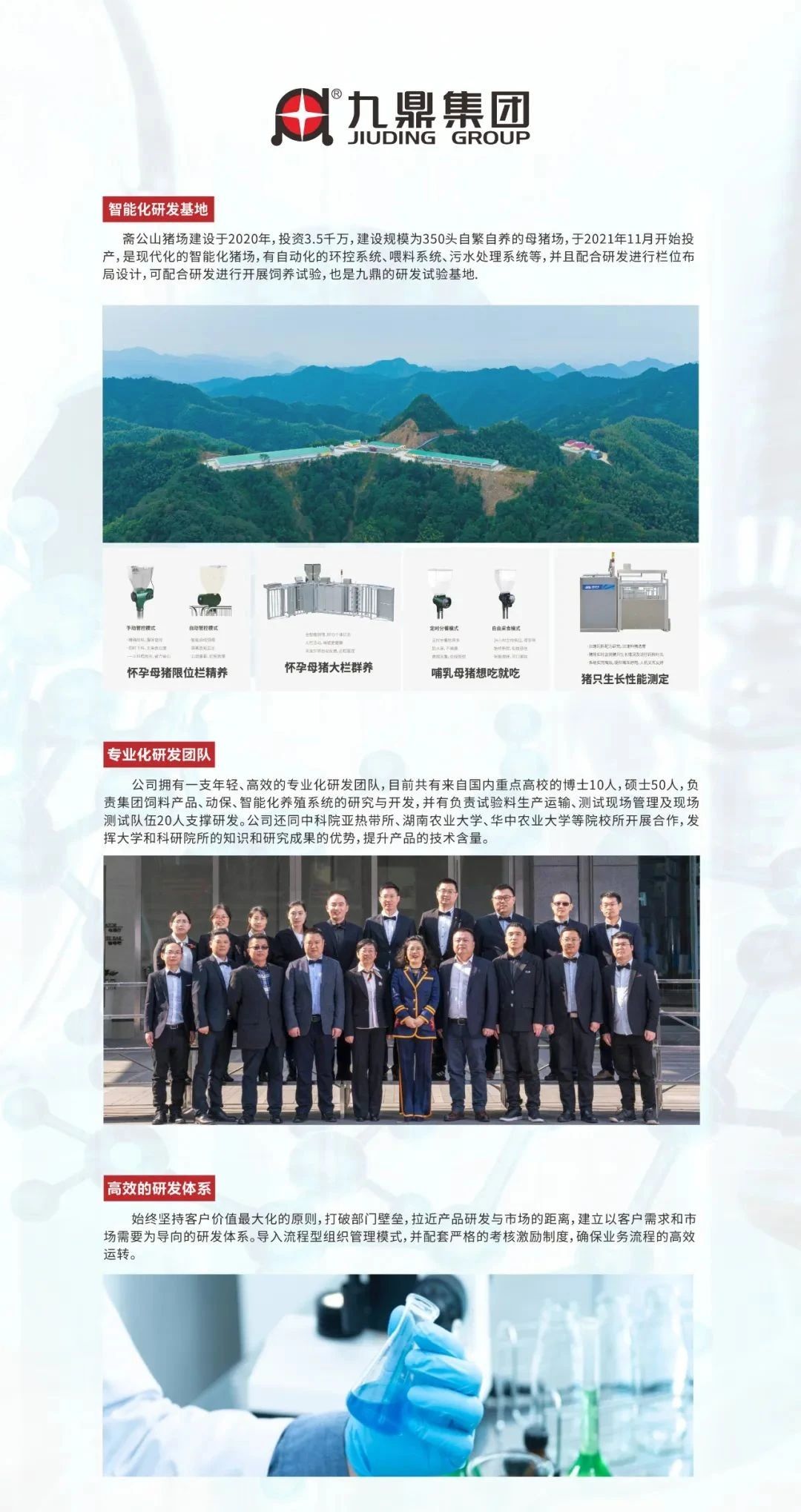 九鼎集團(tuán)29年來(lái)專(zhuān)業(yè)研發(fā)生產(chǎn)豬料,在產(chǎn)品創(chuàng)新和實(shí)踐上一直走在行業(yè)前列,未來(lái)九鼎也將繼續(xù)以客戶為中心,為廣大養(yǎng)殖企業(yè)提供優(yōu)質(zhì)的飼料產(chǎn)品及服務(wù),助力生豬養(yǎng)殖業(yè)走向高質(zhì)高效的發(fā)展道路!