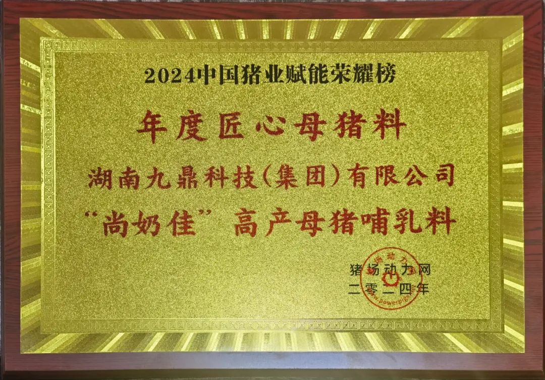 在與李曼大會(huì)同期舉行的2024中國(guó)豬業(yè)賦能大會(huì)頒獎(jiǎng)典禮上,九鼎哺乳母豬料榮獲2024年度匠心母豬料產(chǎn)品獎(jiǎng)。