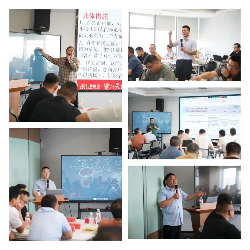 面對行業(yè)存量競爭加劇與養(yǎng)殖戶需求升級的雙重挑戰(zhàn),九鼎集團全面推進戰(zhàn)略轉型:從“飼料供應商”到“全程服務方案引領者”轉變。此次培訓聚焦三大目標:梯隊建設、業(yè)績突破、經驗共享,旨在推動業(yè)務骨干從“單純賣產品”向“飼料+喂養(yǎng)指導+養(yǎng)殖管理”的全程服務模式轉型。訓戰(zhàn)首日,集團監(jiān)事張國球老師通過企業(yè)文化宣貫,筑牢九鼎31年的匠心根基;外聘專家李淼博士與產品中心總經理羅佳捷博士聯袂解析“料、喂、養(yǎng)”全流程轉型路徑,財務中心總經理廖永強深度剖析“增量驅動利潤”的核心邏輯,為參訓骨干拓寬經營視野。