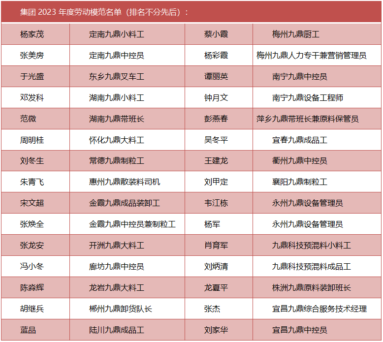 用汗水澆灌收獲,以實(shí)干篤定前行。為大力弘揚(yáng)九鼎文化,鼓舞激勵(lì)廣大九鼎人學(xué)習(xí)標(biāo)桿、趕超先進(jìn),集團(tuán)總部組織開(kāi)展了“致敬價(jià)值創(chuàng)造者”勞動(dòng)模范評(píng)選。經(jīng)嚴(yán)格篩選考察,授予楊家茂等30名員工2023年度“勞動(dòng)模范”稱號(hào)。